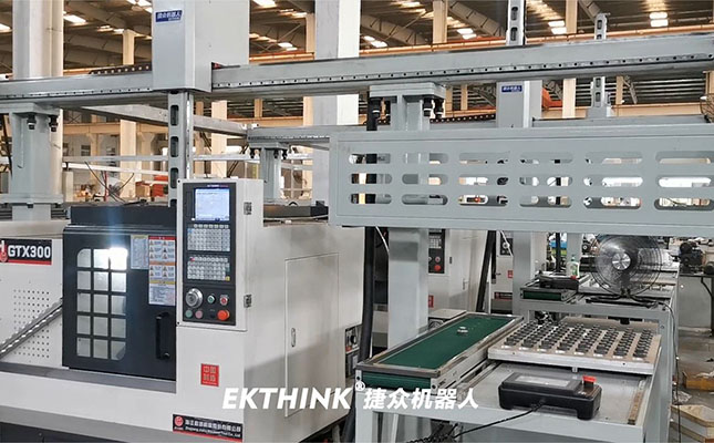數控車床桁架機械手是指單臺或多臺機床配備一套桁架機械手來實現機床加工自動化上下料,替代人工進行自動化裝夾和收料,從而減少人工甚至是無人化作業。24